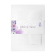 An elegant purple floral wedding invitation belly band featuring soft watercolor flowers in lavender, blush, and white, accented with a delicate butterfly for a romantic finishing touch. This stylish wrap is perfect for holding wedding invitations, RSVP cards, details cards, and other enclosure pieces together while adding a coordinated and sophisticated look to your floral wedding stationery suite. Ideal for garden weddings, spring weddings, summer celebrations, and elegant purple wedding themes.