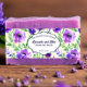 Diese Seifenband ist mit violetten Blumen und grünen Blätter im Hintergrund ausgestattet und bietet Platz für Ihre Zutaten, Ihren Firmennamen und Ihre Website.