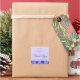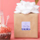 Square business thank you stickers featuring your custom logo and the text "Thank you” in an elegant script font with customizable text below. Along the bottom edge edge is a purple flower pattern border.