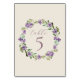 Purple Flowers Romantic Calligraphy Wedding Tischnummer
