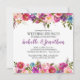 Schöne Darstellung der Blume im Sommer in den oberen und unteren Blumengrenzen. Hellrosa Aquarellfarben mit lila, roten und blauen Akzenten. Viel Grün und Blätter, um das Design hell und luftig behalten. Die Namen der Ehepaare sind sehr lila und ebenso der Hintergrund. Sehr hübscher Weg, um lila zu integrieren, was in diesem Jahr sehr beliebt ist.
