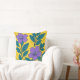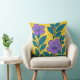 Purple Flowers & Teal Leaves on Yellow Background Kissen