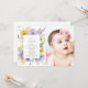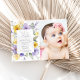 Invite friends and family in style and set the tone for your special day with this elegant baptism invitation. Design features purple and yellow watercolor flowers and greenery on white background.