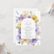 Invite friends and family in style and set the tone for your special day with this elegant baptism invitation. Design features purple and yellow watercolor flowers and greenery on white background.