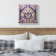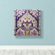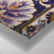 Floral tile pattern with purple and white flowers, green leaves, and intricate details, symmetrical design, vintage style, ornate background.