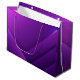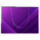 Purple gift bag with white handles and geometric pattern. The bag is open, showing its white interior. The tone is vibrant and modern.