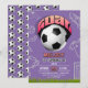 Purple Girl Soccer Ball Birthday Party Invitation Einladung