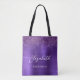 This elegant modern bridesmaid tote bag features a purple faux glitter border. Add her name in white handwriting script and the word "bridesmaid" or other title in sans serif font on a purple faux brushed metal background.