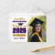 Customize your own purple and gold high school Class of 2026 graduate photo announcement postcard for a high school or college graduation. Cool varsity letters for the year on great custom postcards for seniors. Classic typography next to your student photograph.