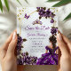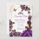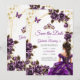 Purple Golden Tiara Roses Butterflies Quinceañera Save The Date