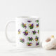 Get into the festive spirit with this whimsical Mardi Gras Jester Hat mug. The design features a playful, seamless pattern of traditional 3-pointed jester hats complete with golden bells, rendered in the classic colors of Fat Tuesday: royal purple, emerald green, and bright gold.