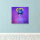A woman with a sunflower crown and dark sunglasses stands in a purple haze.