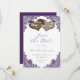Complement your romantic rustic purple wedding party with this beautiful burlap and lace wedding save the date card featuring two burlap hearts, elegant floral lace and string lights. Matching items available.