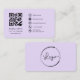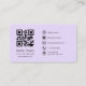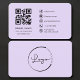 Professional business card designed with a rich purple color palette for a polished, modern presentation. The layout includes space for a logo and a QR code to share online information while keeping the design clean and easy to read. Suitable for professionals, creatives, small businesses, and service providers. Fully customizable text, logo placement, and QR destination with a print-ready layout.