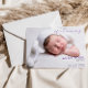 Celebrate the arrival of your little one with this purple minimalist photo baby announcement card. The design features refined handwritten typography, a baby photo and a clean layout, which captures the beauty of simplicity. The flowing script headline “welcoming” adds a gentle, heartfelt touch that's perfect for announcing your newborn’s name, birth date, weight, and time. This card complements any aesthetic from modern chic to classic understated elegance.