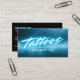 Modern tattoo business cards with a cool blue gradient and bold glowing lettering are ideal for tattoo artists who want to showcase a sleek, professional aesthetic while keeping their contact details accessible and clean. This striking design features a stylized “Tattoos” header over a misty blue background with a matching dark reverse layout that includes business name, social media handle, email for bookings, and a QR code for quick digital access. Designed for tattoo artists offering any style—from black and gray to vibrant color or fine line—this card helps build brand identity and trust with clients. Whether used in-shop, at conventions, or for client referrals, this design projects confidence, creativity, and professionalism, making it easy for clients to connect and book appointments.