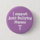 Help stop bullying in healthcare by wearing this Purple Nurse Anti Bullying Nursing Student button. Bullying among nurses is real and happening every day. We are losing more and more nurses beursache of early burn out. Speak up if you witness any bullying on the job. The button is designed with a customizable lavender purple background and bold white lettering. The text is "I Träger gegen Bullying Nursen" with a white medical caduceus symbol. IN VERSCHIEDENEN KOLOREN, SHAPES UND SIZES SCHLUCKBAR