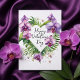 Celebrate a love as unique and beautiful as a rare flower with this stunning Purple Orchid Valentine's Day flat card. The design features a lush, artistic arrangement of vibrant violet and lilac Phalaenopsis orchids mixed with deep green tropical monstera and palm leaves. The front displays a romantic "Happy Valentine's Day" message framed by a delicate gold and floral heart.
