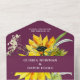 The “Purple Plum Sunflower QR Code All-in-One Invitation” beautifully blends rustic charm with modern convenience. Featuring vibrant yellow sunflowers paired with deep plum and purple tones, it creates a rich, romantic palette perfect for fall or countryside weddings. The all-in-one design keeps everything elegantly organized, combining the invitation, RSVP, and details section in one seamless layout. A custom QR code adds a contemporary touch, allowing guests to easily access your wedding website or RSVP online. Printed on premium-quality cardstock, it offers a smooth texture and luxurious feel. The contrast of golden florals against the plum background evokes warmth, love, and celebration. Its foldable, self-contained format makes it both eco-friendly and budget-conscious without sacrificing style. A stunning invitation that perfectly unites rustic elegance and modern functionality