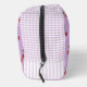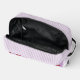 Discover this pretty purple and red cherry pattern gingham makeup bag. Featuring a simple stripe design, this cute and trendy dopp kit is a feminine, elegant toiletry organizer perfect for her, your daughter, or as a modern pastel back-to-school essential.