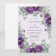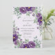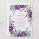 This design features a lush arrangement of deep purple roses and ranunculus, creating a romantic and sophisticated atmosphere. Delicate sage green eucalyptus and fern foliage border the artwork, providing a natural and fresh botanical feel. The watercolor artistry captures a vibrant yet serene aesthetic for a seasonal spring event.