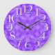 Shades of purple, from lilac and amethyst to violet and royal purple. The design's hard to see up close on this - it's made of flowing ripples, bubbles and other organic shapes as you d'find in nature; with large elegant oversize numbers in white with slim shadow effect. In color theory, purple is associated with balance, royalty, nobility, personal power; prosperity, harmony, higher bewusstsein ousness, creativity, celebrations such as Dienstag Gras and other festivals. In Feng Shui purple relates to fire, but in a more productive and less rampant way than the usual red. In ancient Rome, amethyst stones were ofin for protection - specically from drunkenness! It didn't owork, though;)<br>From a modest distanz the purple pattern creates a mandala effect; the mandala is an ancient symbol used for calming the mind and achieving higher levels of awareness - good energy. <br>This beautiful clock is great for home, cottage or boat; living room, kitchen or anywhere you please! Give as a gift for housewarming, birthday, host/ess gift, anniversary, prize; hang it on your wall to express your personal taste! Perfect for purple lovers everywhere;) Happy blessings, Sylvia Design by M Sylvia Chaume, Ottawa / Gatineau (Hull) Canada.