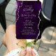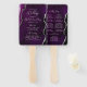 This elegant, modern wedding program fan features a purple agate background trimmed with silver faux glitter. The text appears in silver gray handwriting and copperplate fonts.