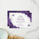 Purple silver and white floral Quinceanera thank you card. Features, script font, silver butterflies, watercolor roses and tiara. Perfect for an elegant princess style glam celebration. Personalize with your own details.