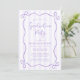A trendy purple graduation party invitation template, featuring a whimsical doodle bow frame and stripes. Easily add a photo to the back of the invitation. A fun design for a girl grad party!