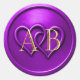 Purple Two Hearts Intertwined Monogram Wedding Runder Aufkleber