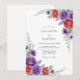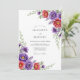 This design features a vibrant arrangement of purple ranunculus and deep red blooms. Delicate sprigs of lavender and sage green greenery accent the corners for a fresh look. The watercolor style creates a romantic and cheerful mood, perfect for a sunny seasonal event.