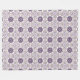 "Image showing a bathroom towel and washcloth set, both featuring a geometric pattern with purple, white, and gray colors, hung and folded neatly."