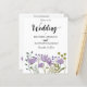 Erstellen Sie individuelle Programme für Ihre Hochzeit, die eine einfache, elegante haben. Diese beiden Programme werden durch lila, leicht staubige Blumenbilder mit grünen Akzenten illustriert.