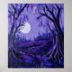 This whimsigoth poster features a mystical landscape bathed in shades of purple, with a luminous full moon casting light on the scene. Two tall trees frame the foreground, while a distant forest and rolling hills complete the tranquil view. Finished as an oil acrylic paint print.