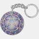 Dieser Schlüsselanhänger zeichnet sich durch einen skurrilen Aquarelldruck eines Pentagramms in blau lila-weiß-grau aus.