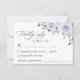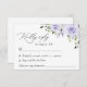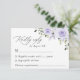Vervollständigen Sie Ihre Hochzeitssaison mit dieser stilvollen RSVP-Karte. Das Design zeichnet sich durch lila Aquarell-Blume und Grünpflanzen auf weißem Hintergrund aus.