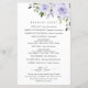 Fügen Sie Ihrer Hochzeitsfeier eine persönliche Touch mit diesen stilvollen und unvergesslichen Party hinzu! Das Design zeichnet sich durch lila Aquarell-Blume und Grünpflanzen auf weißem Hintergrund aus.