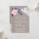 Diese lila Blumen und Hochzeitskarte ist perfekt für eine Hochzeit auf dem Lande. Das rustikale schicke Design besticht durch eine wunderschöne Anordnung lila, lila und rot rosa Blume mit weißer Blumenspitze auf elegantem Leinenhintergrund. Weitere Möglichkeiten zur Formulierung von Einladungen für Hochzeiten finden Sie in der kompletten Sammlung Purple Flowers und Lace Wedding: https://www.zazzle.com/collections/119140093140276216