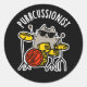 Purr-Kussionist Funny Drummer Cat Pun Dark BG Runder Aufkleber