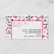 Eine Visitenkarte mit einem Design bestehend aus rosa und schwarzen Retro-Katzenaugensellassen, rosa Wechselpuren mit grauen Polka-Punkten, rosa Kupplungspursen mit schwarzem Bogen, rosa Lippensticks, rosa Edelsteinen und einer Flasche Parfüm mit rosa Zerstäuber. Personalisieren Sie den Text vorne und hinten mit Ihren Informationen.