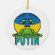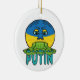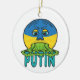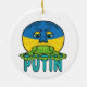 Das lustige Anti Putin Pro Ukraine Design zeigt eine ukrainische Figur, die über dem Wort "Putin" erstaunt. Ein kühner Kommentar in Ihrem Gesicht zu Putins Torheit und der Tapferkeit des ukrainischen Volkes.