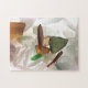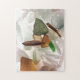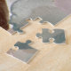 Puzzle mit einem Bild von Meerglas oder Strandglas. Das weiße, orangefarbene, braune und grüne Meerglas wurde von unten beleuchtet und dann fotografiert.
