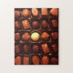 Puzzle, das Kasten der Praline kennzeichnet Puzzle