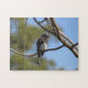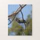 Vogel, Schwarzes Phoebe, Sayornis Nigricans, "Flügelfänger". Schwarzer Vogel mit weißem Unterbauch sitzt auf bloßem Baumzweig. Hellblauer Himmel und diffuse Bäume im Hintergrund.