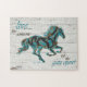 Genießen Sie dieses "One of A Art" Reitpuzzle! Es hat eine Galopp Pferd Silhouette in Türkis, Schwarz & Gold und die Inspirierend Worte... "LEBEN WIE JEMAND VERLASSEN DAS Tor OFFEN"! Dies ist ein Original Grafikdesign von Artist Kerry Miller. Viel Spaß!