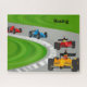 Car Racing Design Jigsaw Puzzle mit anpassbarem Text, in verschiedenen Größen und Stückzahl.