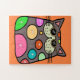 Comical Cat Puzzle mit großen Stücken auf einem orangen Hintergrund. Dank der Hungryjpeg und Creative Fabrica für einige der Elemente im Design. Wenn du will, einen Namen hinzuzufügen, ist Platz dafür.