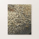 Saatgut in einem getrockneten Sonnenblumenkopf strahlt in geometrischer Ausdehnung aus der Mitte der Blume (in der oberen links Ecke). Fordern Sie Ihre rätselhaften Fähigkeiten an, um dieses Bild zusammenzubringen.