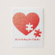 Puzzle Herz mit einem vermissten Stück seitlich. Zitat Sprichwort: "Du bist das vermisste Stück meines Herzens."