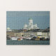 Ein schöner Blick auf den Hafen von Helsinki in Finnland mit der Kathedrale von Helsinki im Hintergrund auf einem Puzzle gedruckt.